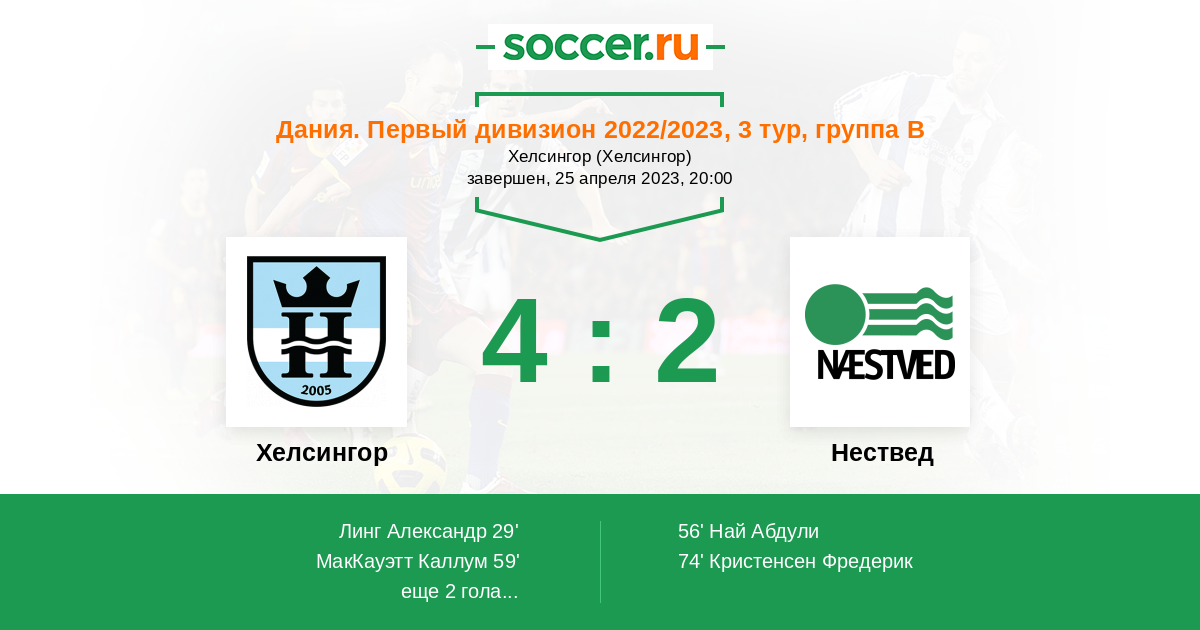 Протокол матча Хелсингор против Нествед