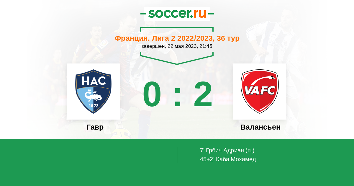 Протокол матча Гавр против Валансьен