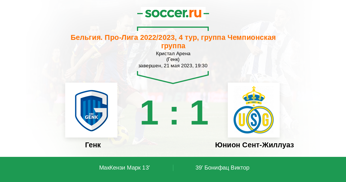Протокол матча Генк против Юнион Сент-Жиллуаз