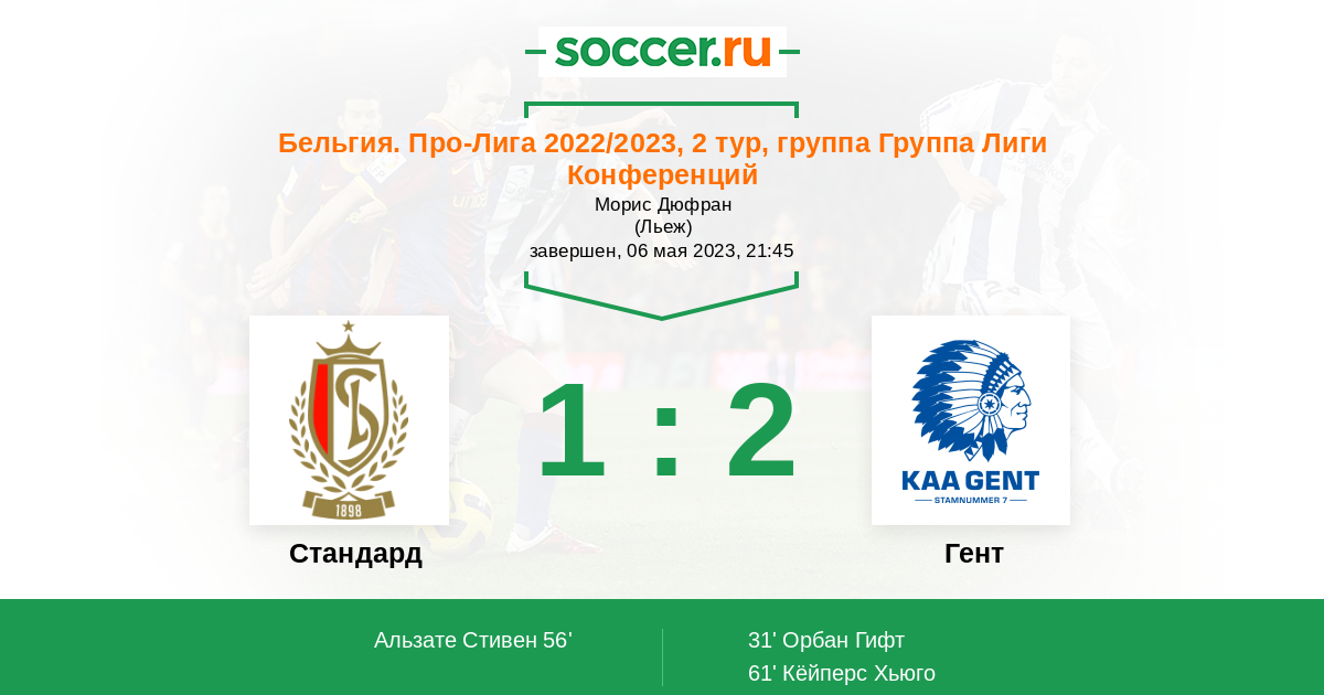 Протокол матча Стандард против Гент