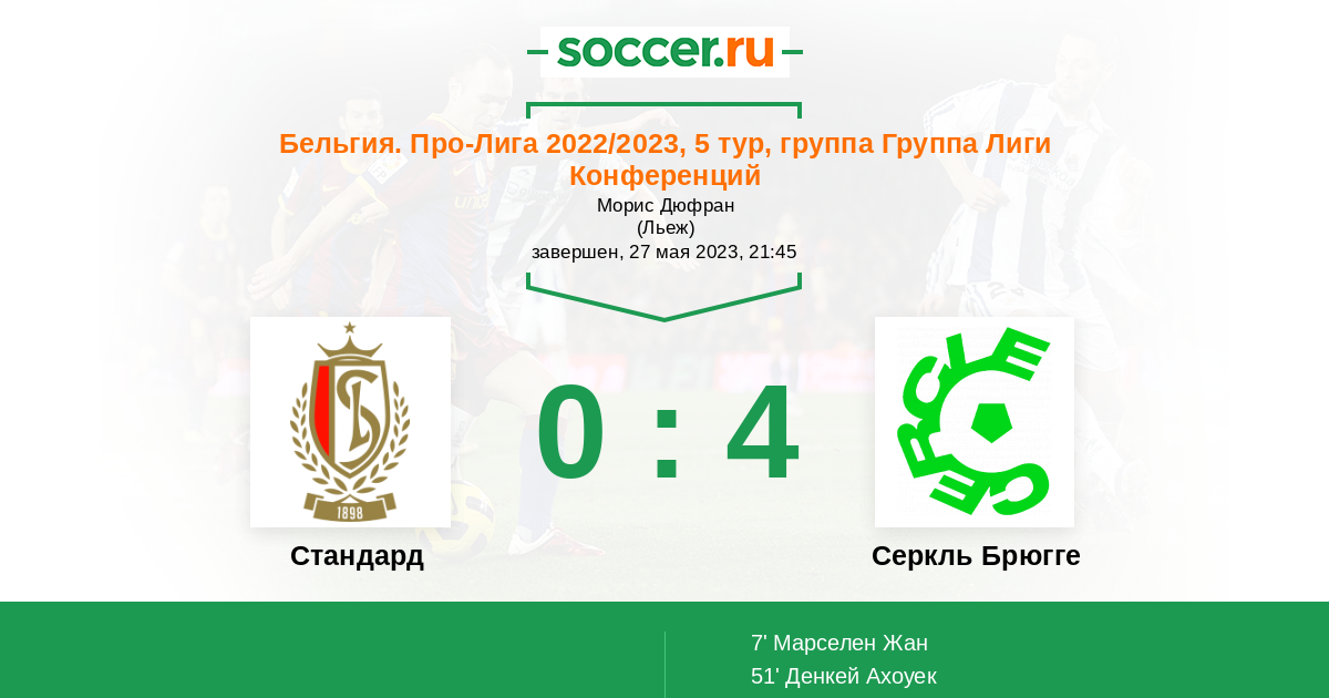 Протокол матча Стандард против Серкль Брюгге