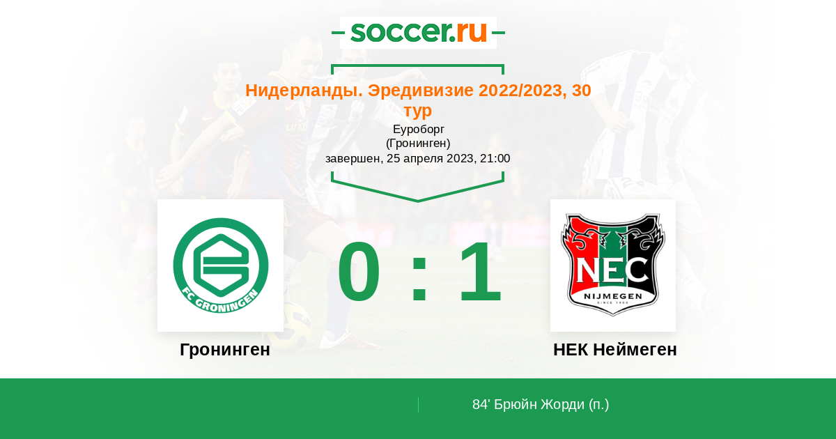 Протокол матча Гронинген против НЕК Неймеген