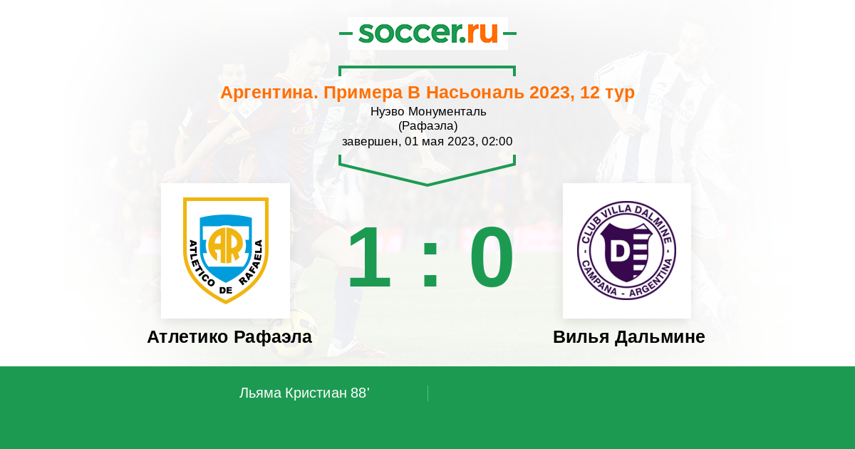 Протокол матча Атлетико Рафаэла против Вилья Дальмине
