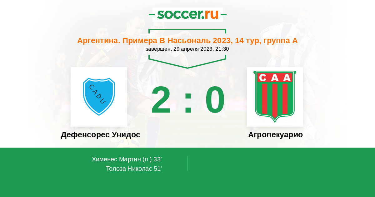 Протокол матча Дефенсорес Унидос против Агропекуарио