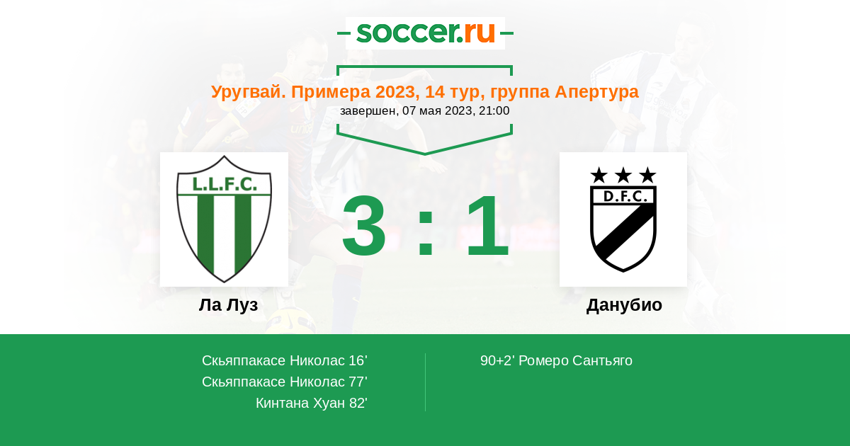 Протокол матча Ла Луз против Данубио