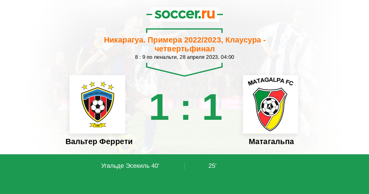 Протокол матча Вальтер Феррети против Матагальпа