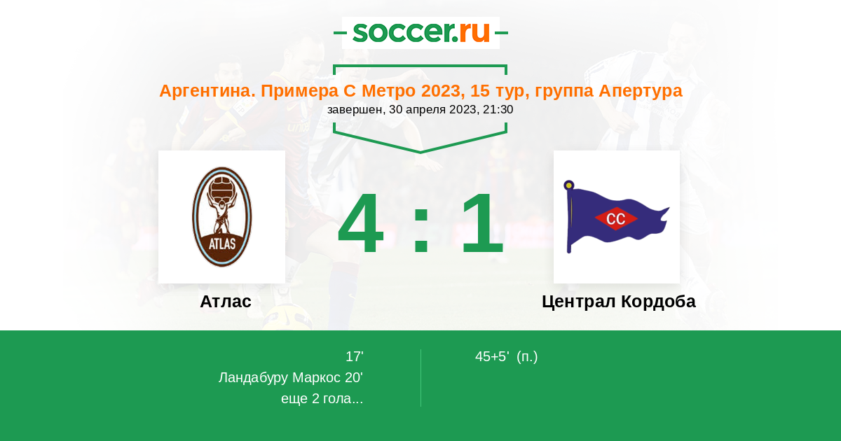 Протокол матча Атлас против Централ Кордоба
