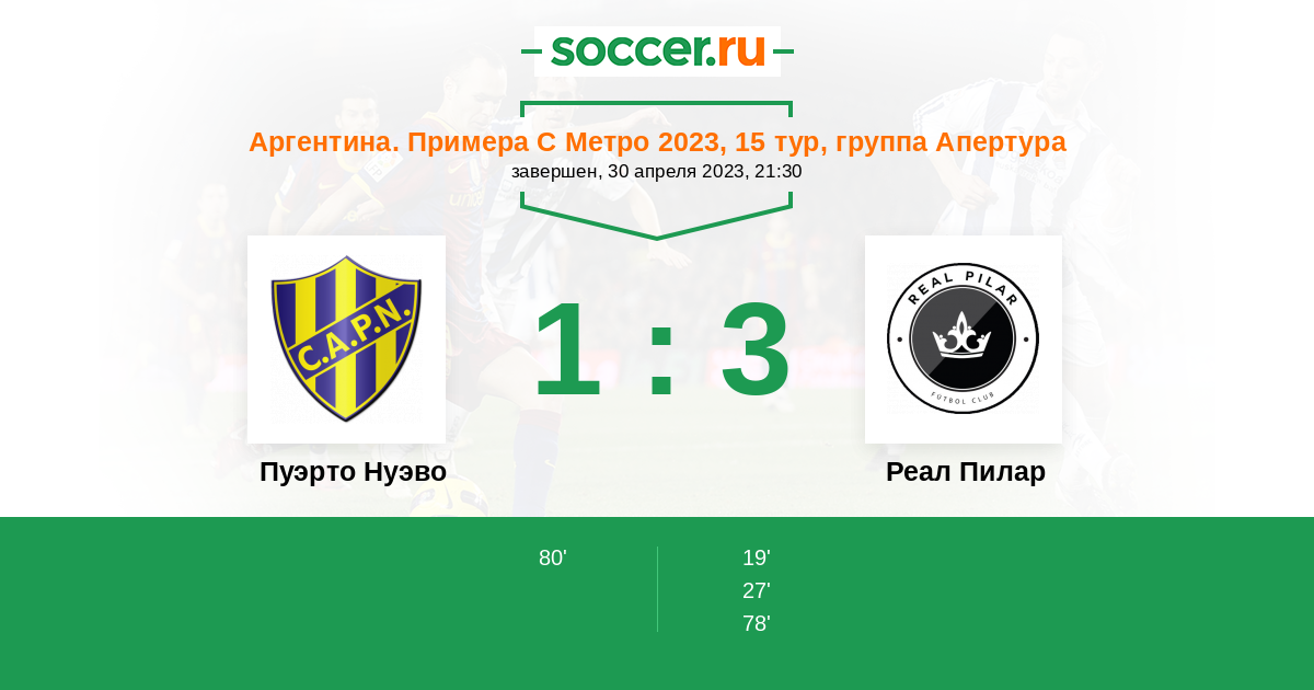 Протокол матча Пуэрто Нуэво против Реал Пилар