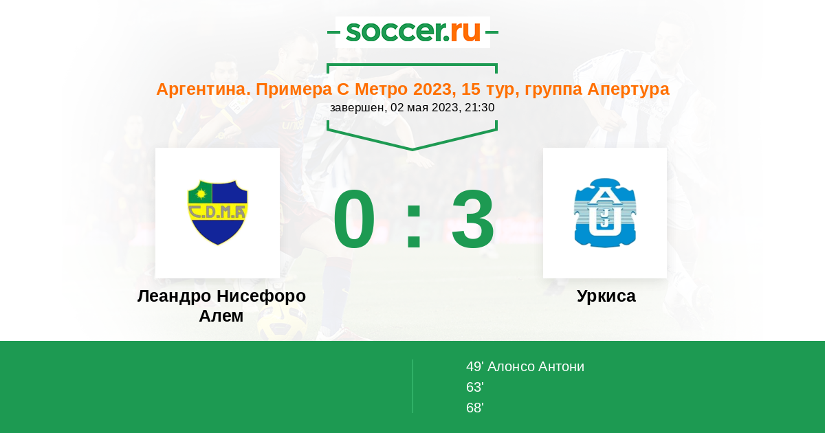 Протокол матча Леандро Нисефоро Алем против Уркиса