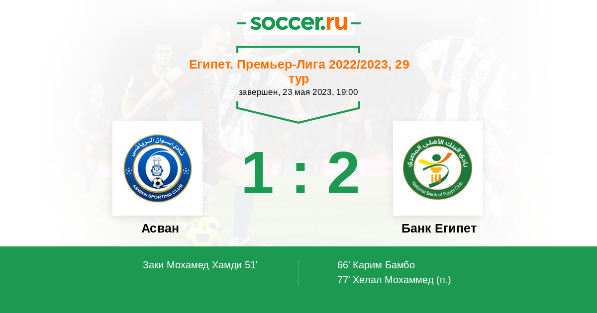 66' (1:1) Карим Бамбо (10) (Сайед Махмуд (8))