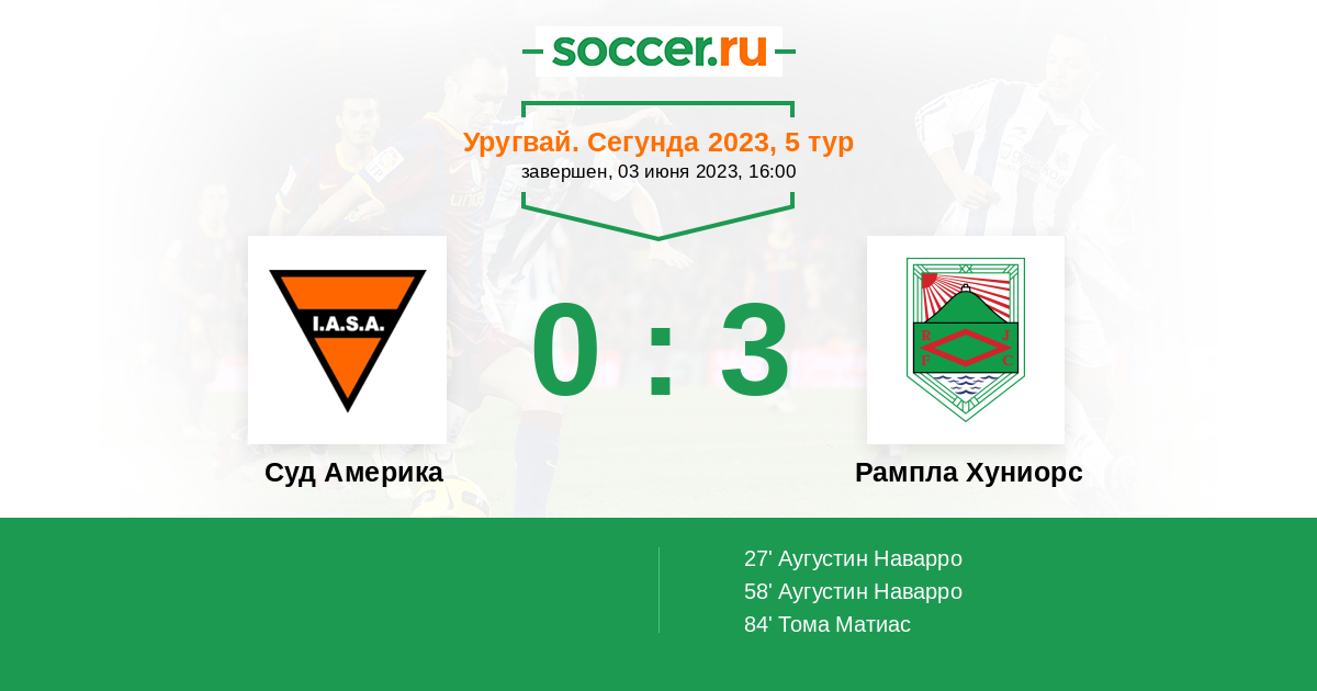 Протокол матча Суд Америка против Рампла Хуниорс