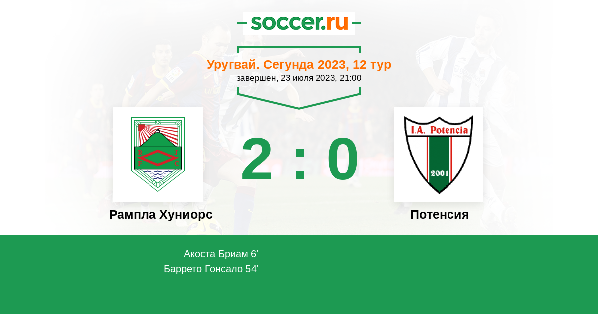 Протокол матча Рампла Хуниорс против Потенсия