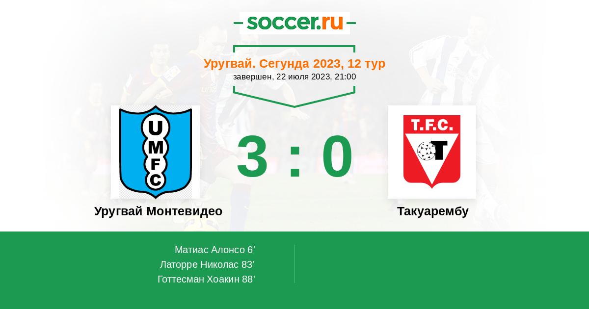 Протокол матча Уругвай Монтевидео против Такуарембу