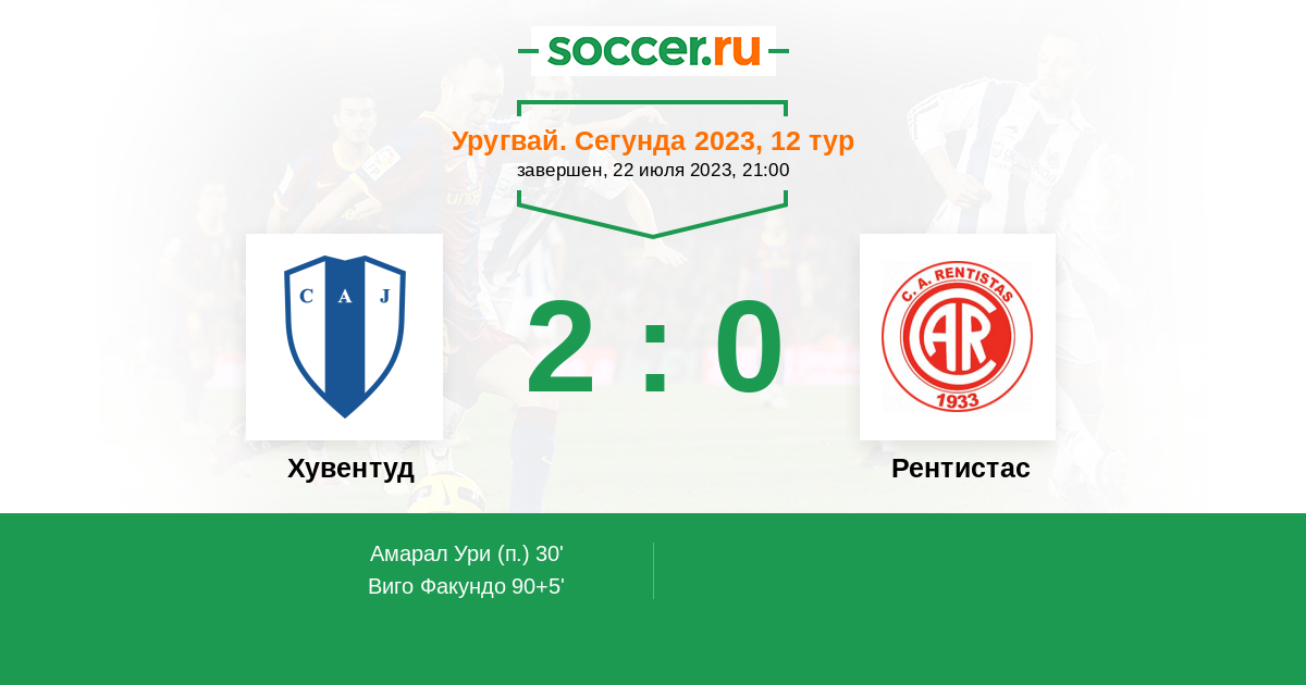 Протокол матча Хувентуд против Рентистас