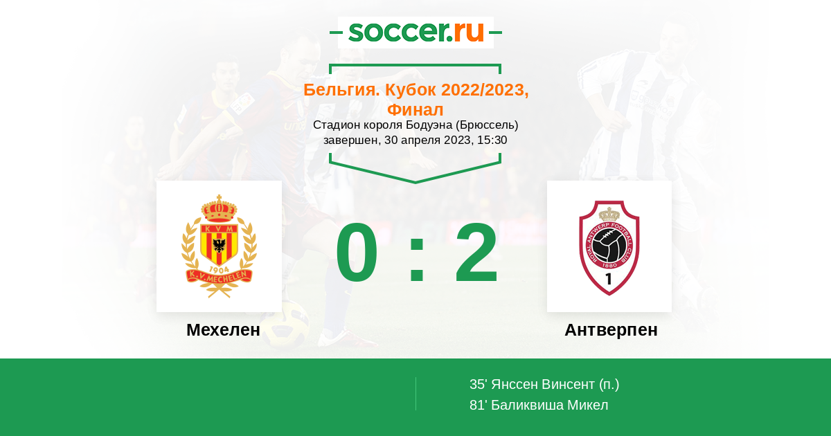 Протокол матча Мехелен против Антверпен