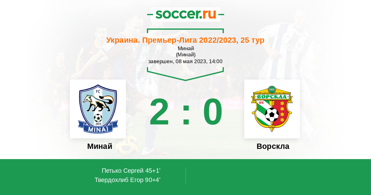 Протокол матча Минай против Ворскла