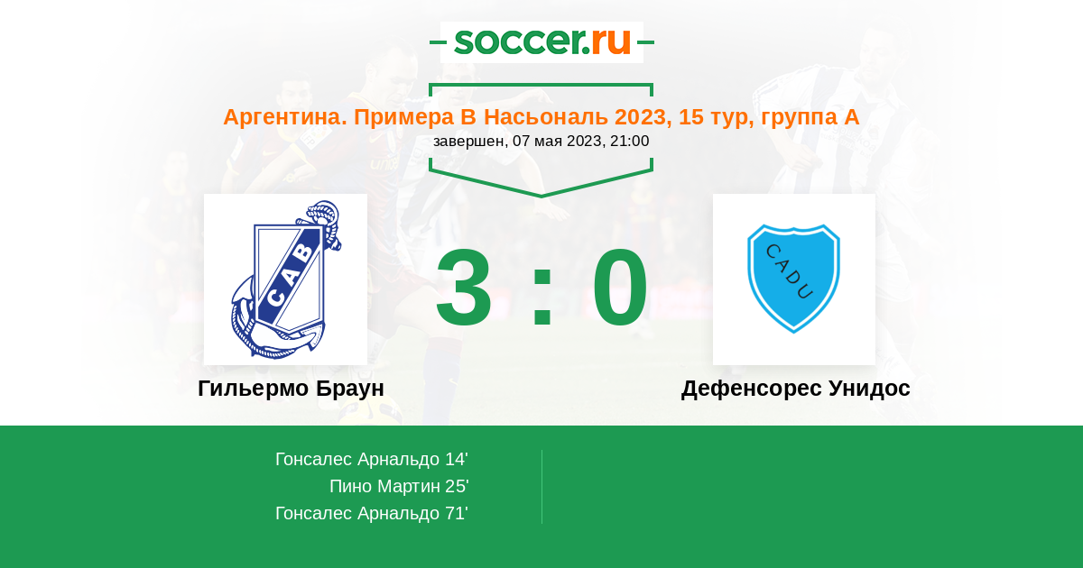 Протокол матча Гильермо Браун против Дефенсорес Унидос