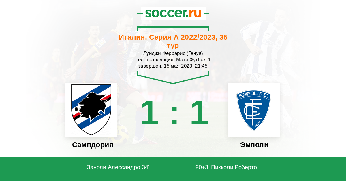 Протокол матча Сампдория против Эмполи