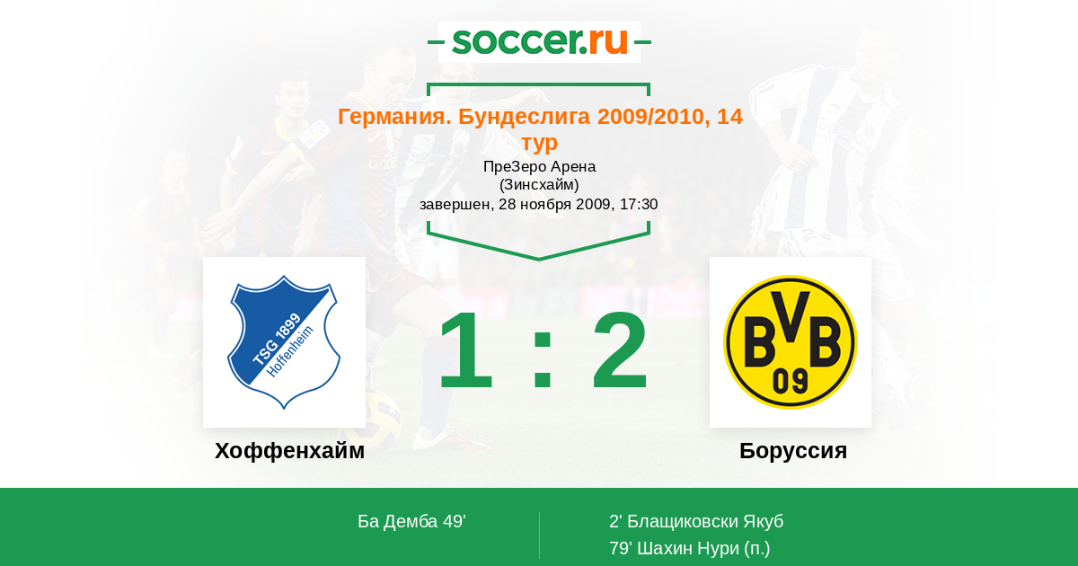 Протокол матча Хоффенхайм против Боруссия