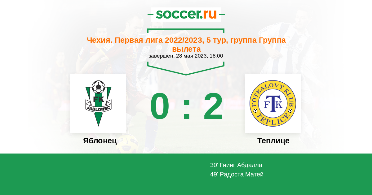 Протокол матча Яблонец против Теплице