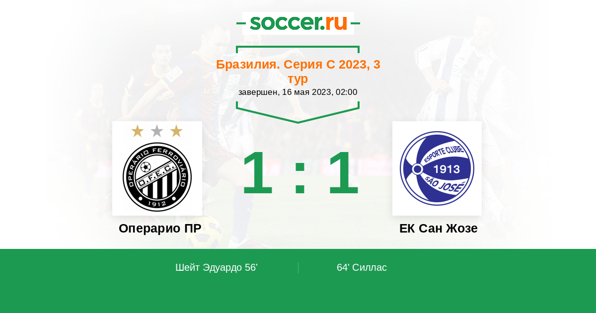 Протокол матча Операрио ПР против ЕК Сан Жозе