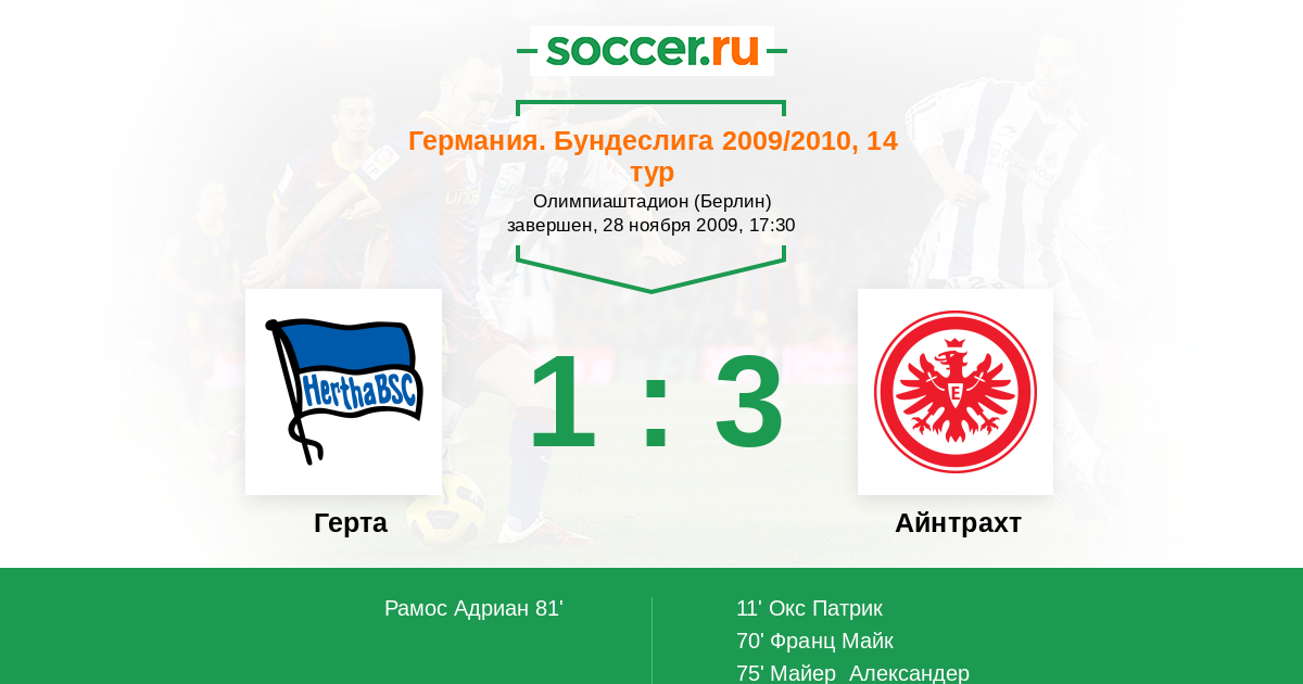 Протокол матча Герта против Айнтрахт