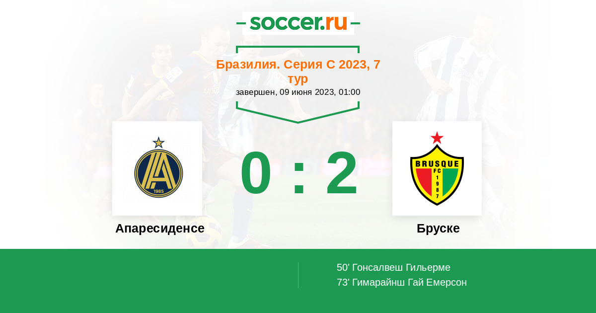 Протокол матча Апаресиденсе против Бруске