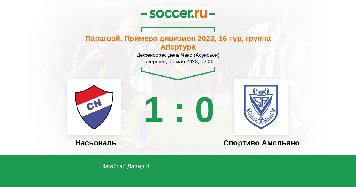 Протокол матча Насьональ против Спортиво Амельяно