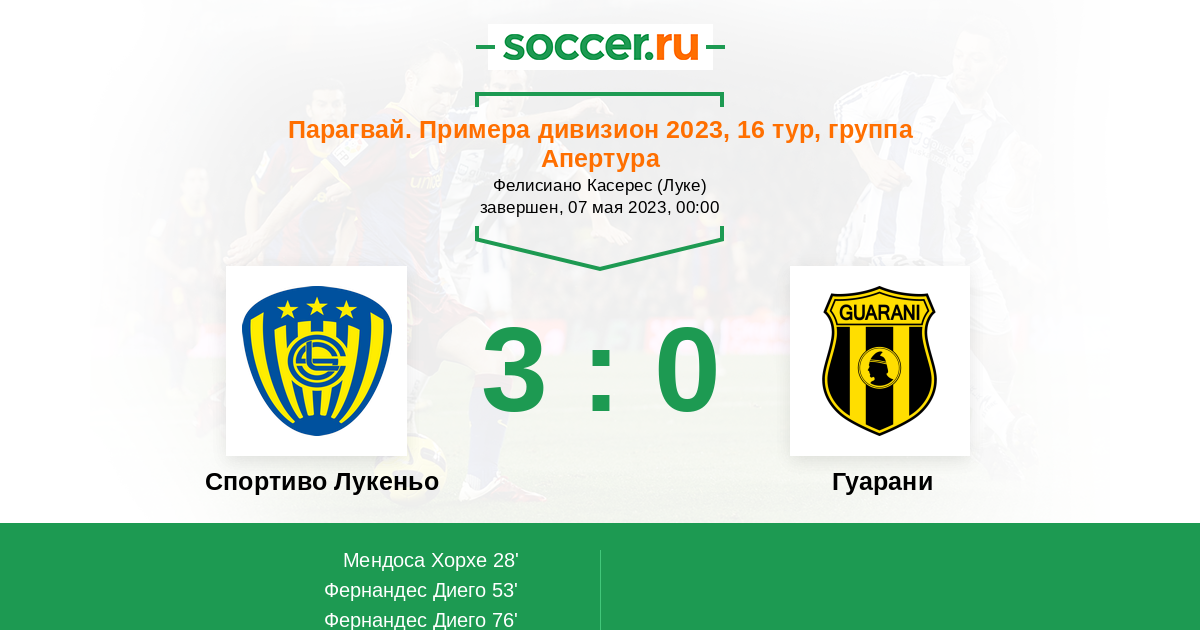 Протокол матча Спортиво Лукеньо против Гуарани