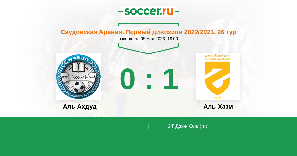 Протокол матча Аль-Ахдуд против Аль-Хазм