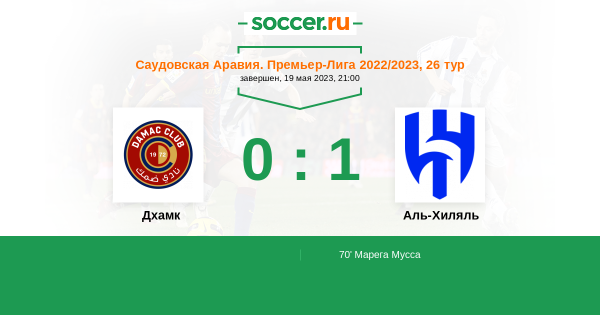 70' (0:1) Марега Мусса (17) (Аль-Бурайк Мухаммед (2))