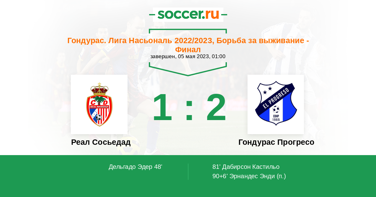 Протокол матча Реал Сосьедад против Гондурас Прогресо