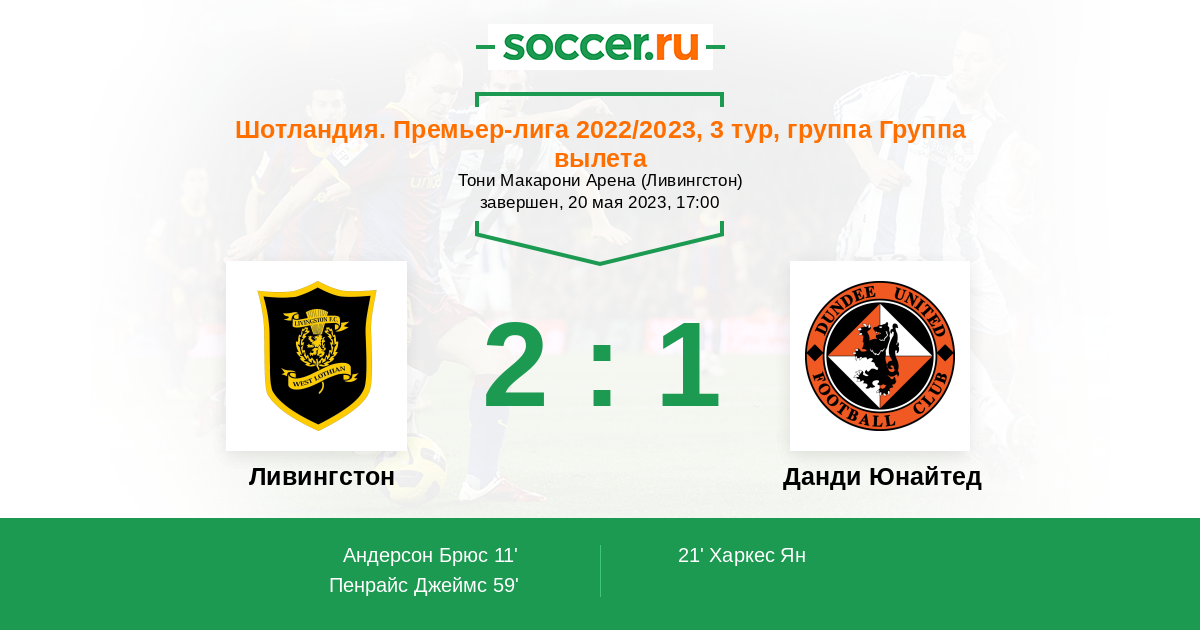 Протокол матча Ливингстон против Данди Юнайтед