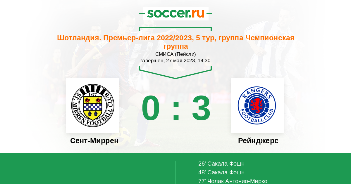 Верю в Рейнджеров! Они должны взять свои 3 очка в этом матче. Соперник хоть и не уступчивый но шансы велики. Да шанс нагнать Селтик отсутствует как таковой, но все же приятней будет уйти за 90 очков в чемпионате.