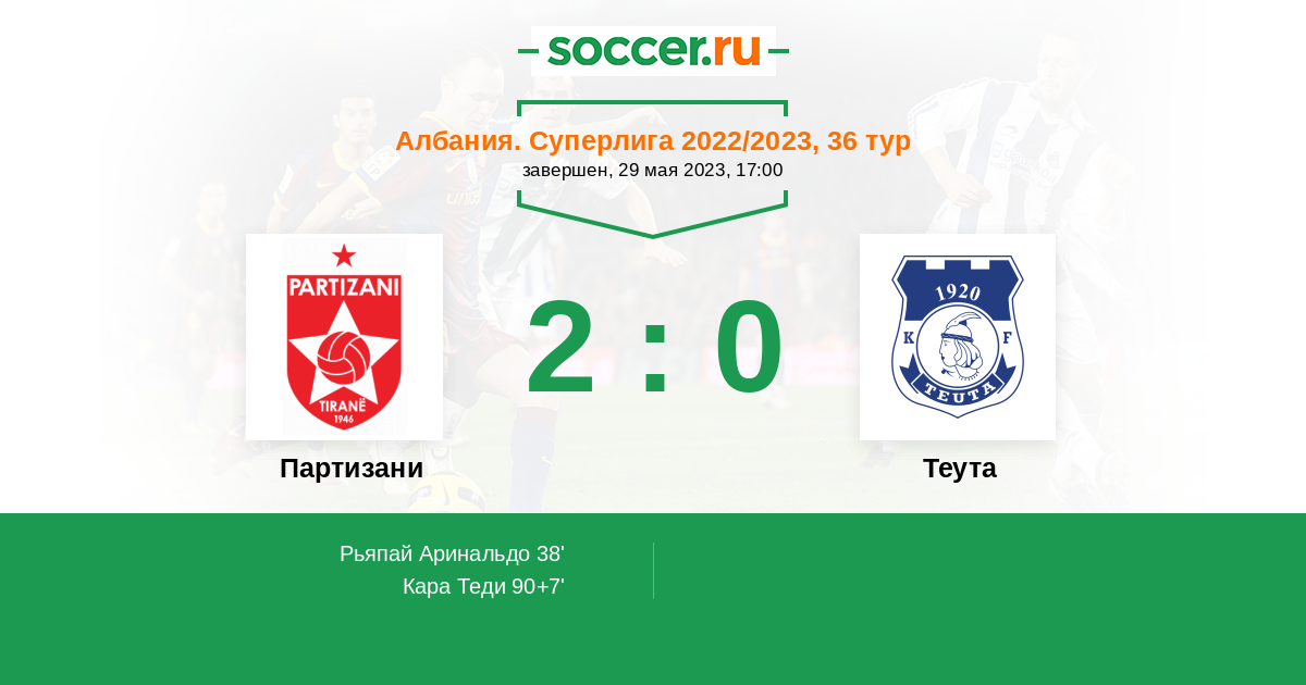 Протокол матча Партизани против Теута