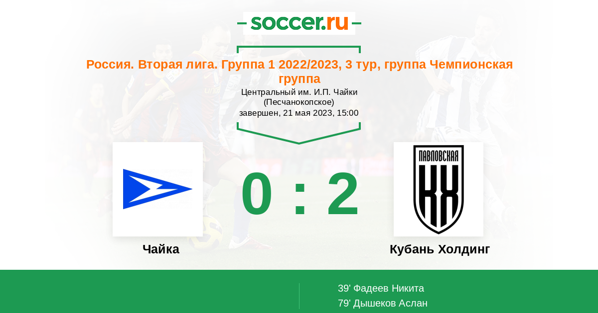 Протокол матча Чайка против Кубань Холдинг