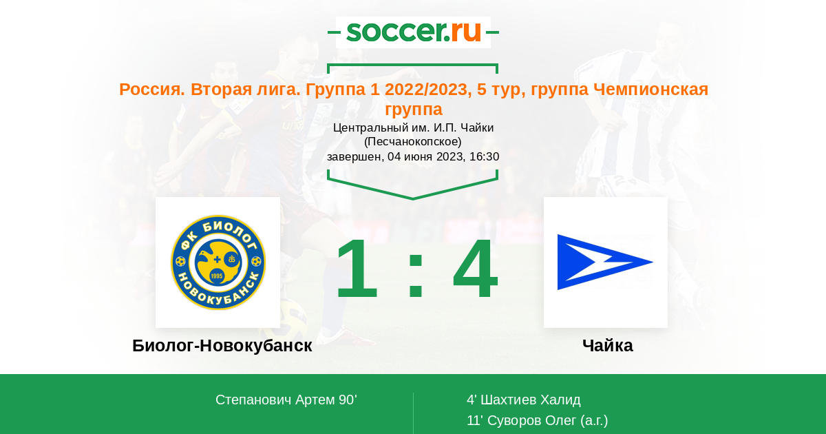 Протокол матча Биолог-Новокубанск против Чайка