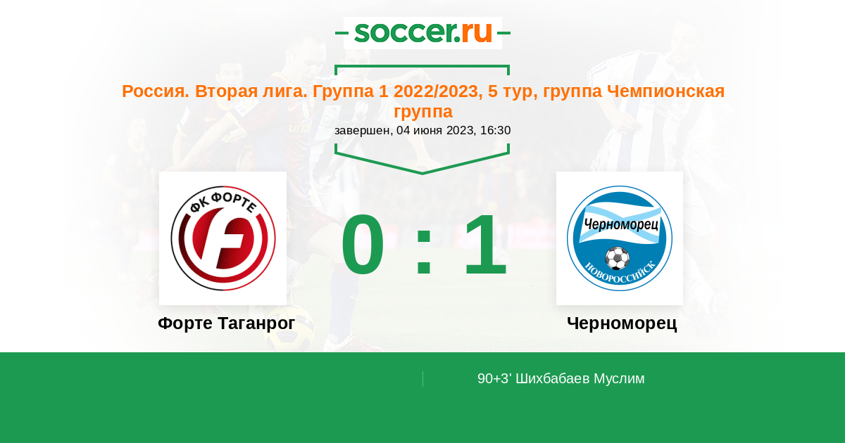 Протокол матча Форте Таганрог против Черноморец