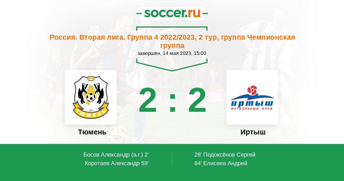 Протокол матча Тюмень против Иртыш