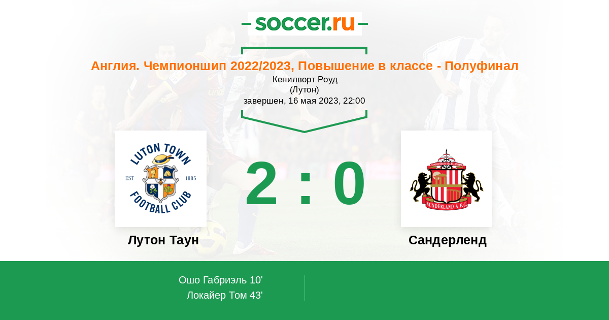 Протокол матча Лутон Таун против Сандерленд