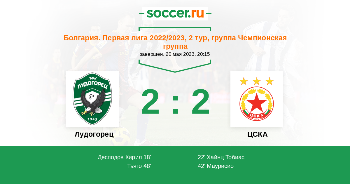 Протокол матча Лудогорец против ЦСКА