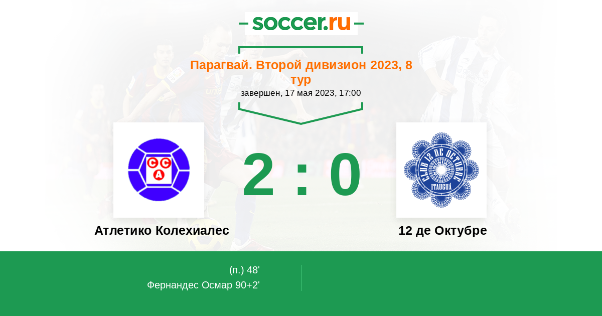 Протокол матча Атлетико Колехиалес против 12 де Октубре