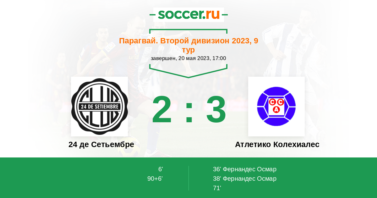 Протокол матча 24 де Сетьембре против Атлетико Колехиалес