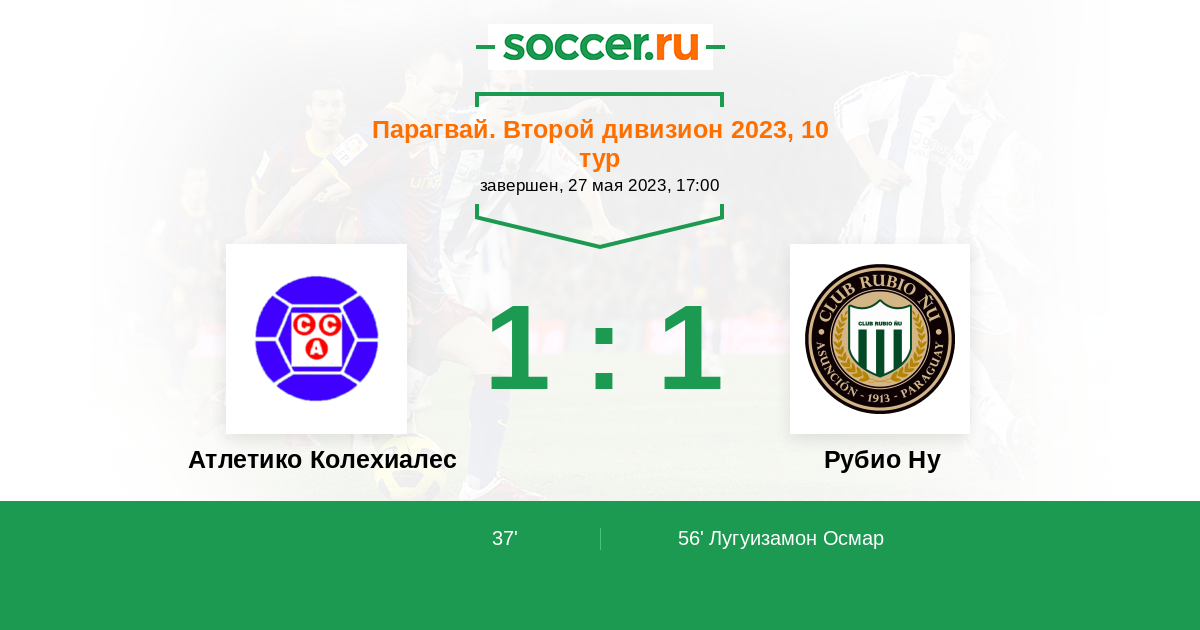 Протокол матча Атлетико Колехиалес против Рубио Ну