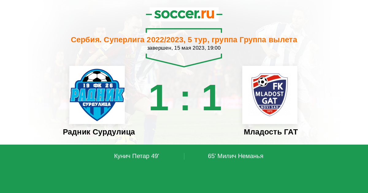 Протокол матча Радник Сурдулица против Младость ГАТ