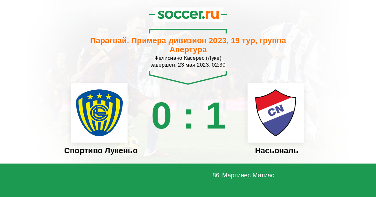 Протокол матча Спортиво Лукеньо против Насьональ