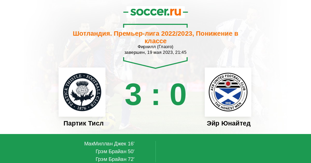 Протокол матча Партик Тисл против Эйр Юнайтед