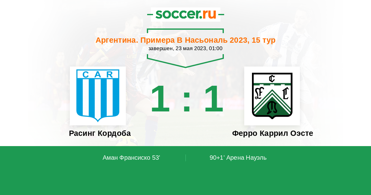 Протокол матча Расинг Кордоба против Ферро Каррил Оэсте