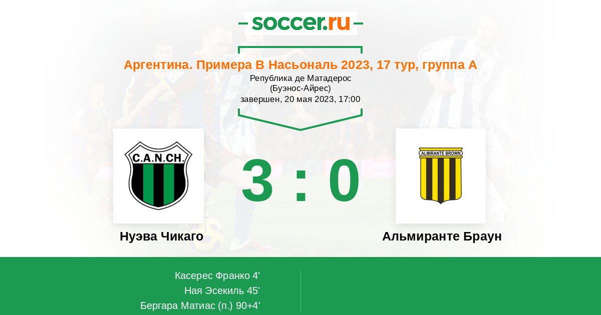 Протокол матча Нуэва Чикаго против Альмиранте Браун