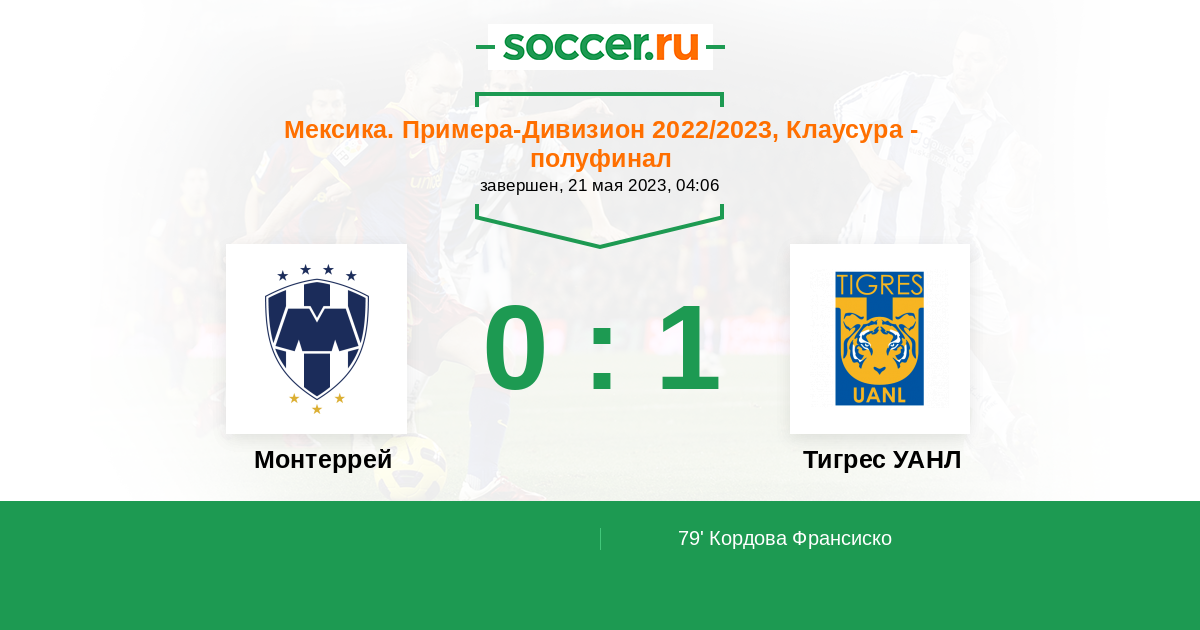 Протокол матча Монтеррей против Тигрес УАНЛ